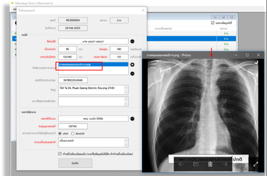 ซอฟต์แวร์สำหรับคลินิก/โรงพยาบาล มีระบบตรวจคนไข้ ระบบออกใบรับรองแพทย์ ระบบฐานข้อมูลยา-เวชภัณฑ์ ระบบการจ่ายยา ระบบสต๊อกยา-เวชภัณฑ์ ระบบฐานข้อมูลคนไข้ ระบบฐานข้อมูลแพทย์และบุคคลากร สามารถเก็บข้อมูลการตรวจรักษาได้ละเอียดและแนบไฟล์ผลแล็บของการตรวจรักษาแต่ละครั้งได้ ออกใบรับรองแพทย์อย่างเป็นระบบ ค้นหาตรวจสอบข้อมูลย้อนหลังได้สะดวก เช่น น้ำหนักตัว, ส่วนสูง, ความดันโลหิต, ปรอทชีพจร, โรคประจำตัว, อุบัติเหตุ-ผ่าตัด, เคยเข้ารับการรักษาที่โรงพยาบาลและประวัติสุขภาพ, ผลการตรวจพร้อมความเห็นของแพทย์ ถ้าคนไข้มาขอใบรับรองแพทย์หลายครั้ง ก็จะเห็นประวัติข้อมูลสุขภาพคนไข้ที่ต่อเนื่อง แนบไฟล์เอกสารอื่นเข้ากับใบรับรองรองแพทย์แต่ละฉบับได้ เช่น ผลการตรวจปัสสาวะ, ผลเอกซเรย์ มีข้อมูลของบุคคลากรทางการแพทย์ และของคนไข้ ซึ่งใส่รูปถ่ายได้, ข้อมูลชื่อ, ที่อยู่, เลขบัตรประชาชน, การแพ้ยาหรือสิ่งที่ต้องระมัดระวังเป็นพิเศษ, เบอร์โทรศัพท์ที่ติดต่อได้, ไลน์ไอดี สามารถรวมบิลค่าตรวจรักษากับค่ายาเป็นใบเดียวกันได้, ออกใบเสร็จ, ใบเสร็จมี VAT, ใบกำกับภาษีให้คนไข้ได้ สามารถใส่โลโก้และข้อมูลของสถานพยาบาลได้ และจะไปปรากฏที่เอกสารต่างๆ ที่ออกจากระบบ สามารถรับเข้าสต๊อกยา-เวชภัณฑ์, ปรับยอดคงเหลือสต๊อก, และตัดสต๊อกอัตโนมัติผ่านระบบ POS ที่ใช้ขายยาเพียงอย่างเดียว หรือการตัดสต๊อกอัตโนมัติผ่านระบบการตรวจรักษาที่จะต้องจ่ายยาให้คนไข้ มีระบบสต๊อกการ์ด ที่ช่วยตรวจสอบย้อนกลับ ตั้งแต่รับเข้าจนกระทั่งยาพ้นออกจากสต๊อก